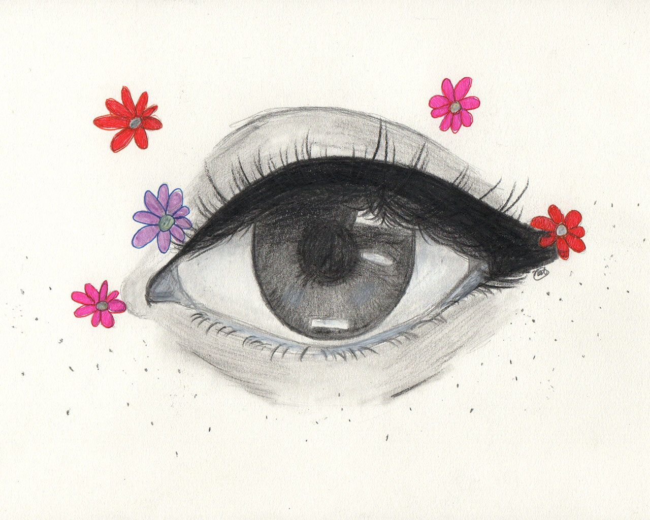 Flowers is one of the many eyes I’ve made in my art career, this one is special because it is monotone, aside from the flowers that pop against the dull colors of the left eye.
